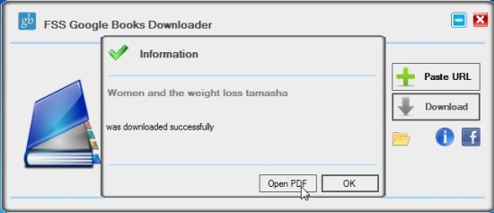 This will download a copy of the eBook to your desktop. However, you can change the destination location if you want. After the download finishes, RSS Google Books Downloader will notify you and provide options to open the preview. You can open it using any PDF Reader or Image Previewer installed on your system. So go ahead and give it a try!