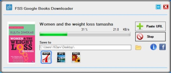 FSS Google Books Downloader is very easy to use. First of all, browse the desired book on Google Books as you normally do. Then when you find that, go to the preview page of the eBook and copy the URL on your clipboard. Now launch FSS Google Books Downloader and click on the “Paste URL” button.