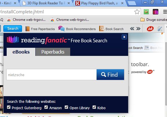 ReadingFanatic is a toolbar that has a large selection of bookmarks to websites that offer free ebooks like Gutenberg, Open Library, Kobo and more.