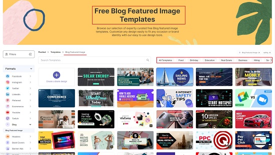 Simply navigate to the Blog Featured Image section of Pixelied using the link that we have provided below and go through the range of designs that are available. You can search for specific Featured Images using the search bar. Additionally, you can use the Filters at the top right to narrow down your search.
