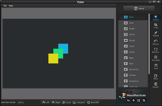 When it comes to visual appearance, there’s hardly an application on this list that can beat Fotor. The freeware program is clearly one heck of a looker. But underneath that pretty UI, Fotor packs in a truckload of goodies that make it a pretty solid image editing program. The different editing operations available in Fotor are segregated into categories, and are easily accessible via a pane on the right. For example, the Adjust section includes options for changing brightness, color, and white balance, whereas the Scenes section includes the lighting scene presets available. And that’s not all. Fotor includes a large number of filter effects (again divided into categories) which can be applied to images to make them look even better. Find out more here.