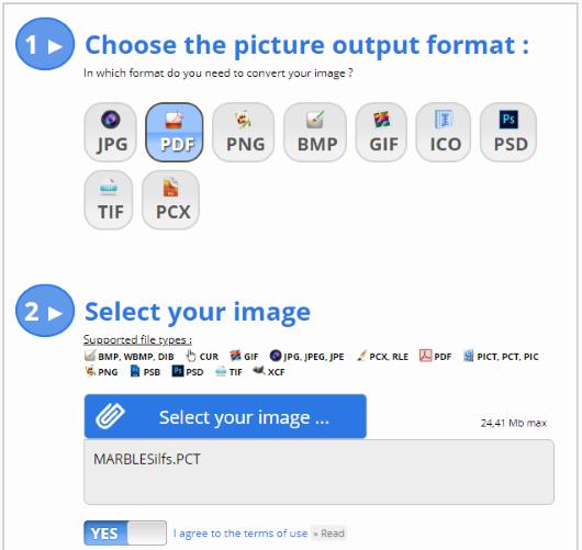 ConvertImage (Homepage) is also a nice option for converting PICT to PDF. You can add around 20 MB PICT file and then get the output as PDF. Only three steps are needed to get the output. Access its picture to PDF converter tool and add PICT file from your PC. Agree to terms and use and press “Convert this image” option.