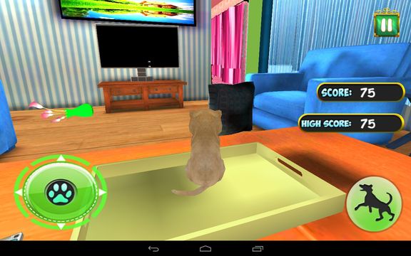 You get points the more damage you do to the room. Use the on screen controls to move the puppy around (the button on the left), and another one to the right for jumping. Try to get as much points as you can get to end up on the list of high scores.