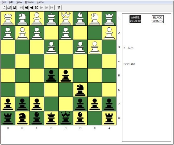 Arasan is another completely free chess program to play chess, developed for Windows and Linux users. Unlike other chess programs, this chess program includes several customization options. It includes Appearance options which allow you to select the type of piece font and you can even select the board size between small, medium, large, and extra large. You can even select you preferred colors for the chess board with the help of Board colors option. Arasan even include few Game options to rotate chess board, view game moves, take back the move, make the computer play with White, etc. It provides Browse options to access the previously played game with a single click. Like the above reviewed chess programs, this chess game is also played with the help of mouse.