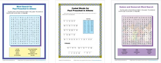 The site has a number of sheets of Printable Bible Search Puzzles. The list is quite long and all the games are based on the Bible. You can find a good range of word puzzles games such as Bible word search, Jesus heals the blind man, women in the bible, prayer, fasting, occupations in the bible, etc.