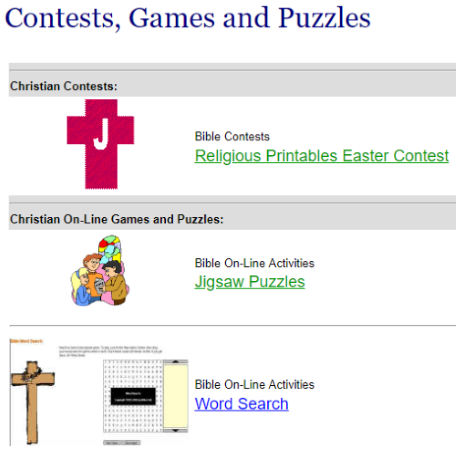 On this website, you will find a section called Puzzle & Games. This particular section has games like Religious printable Easter Contest, Word search, Bingo games, crossword puzzle, Cryptograms, Mazes, and other fun games. These games are based on the Bible’s words, objects, and character.