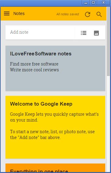 It works as a standalone app, it will open up in a new window from where you can start adding text notes, to-do lists and more. App automatically detects the Google account with which you’re logged in. There’s also an Android app that you can use to access saved notes on smartphones and tablets.