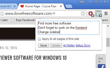 Page Notes gives you a unique approach to cloud note taking. It lets you create web page specific notes. You can visit this website, open a page on it, and then jot down notes that are going to be saved and can be only be accessed on that page.