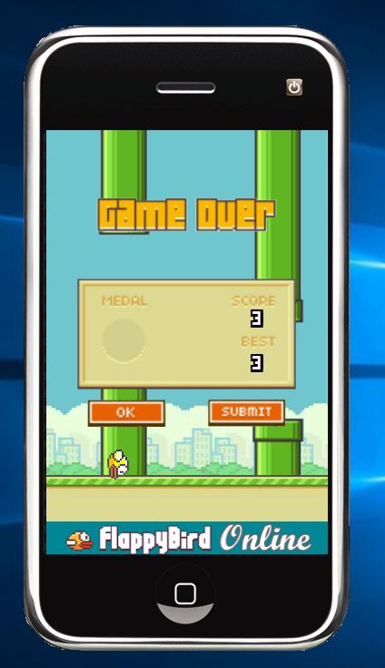 Flappy Bird is the definitive clone of Flappy Bird for Windows 10. You can see the mobile roots of this game because the interface of the desktop reincarnation has an actual mobile phone simulation. Instead of tapping on the screen, how you normally controlled the game on mobile devices with a touch screen, here you hit the Space key on the keyboard.