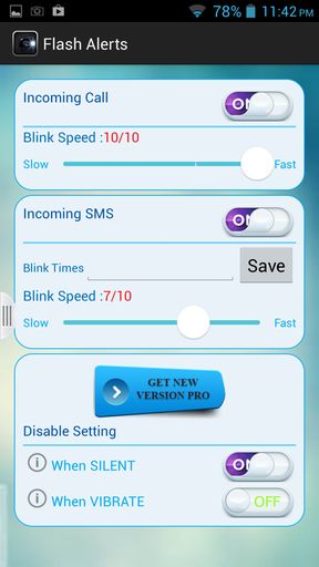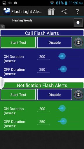 Flash Light Alerts has a lot more settings to tweak than what the previously two mentioned flash alert apps have to offer.