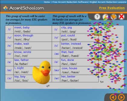 AccentSchool.com is a website that helps you to learn pronunciation in a simple way. This website basically offers an online software to improve or enhance you accent in English language. This online accent improving service appears like a book which comes with orange buttons for previous and next functionality. Click the forward arrow orange button for viewing the next page and click the back arrow orange button to view the previous page. This online accent improving software offer explanations, several activities, audio recordings and video tutorials to improve your accent. So you can refer those explanations and participate in the activities to enhance your accent.