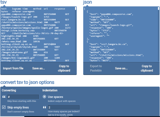 This website has some other useful features also which you won’t find in any other online TSV to JSON converter. You can enable the option to skip lines starting with #, skip empty lines, etc. Based on these features, this online TSV to JSON converter has easily reserved its place on this list.