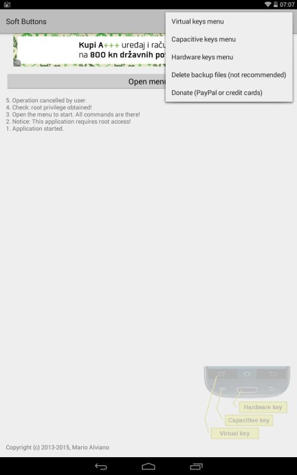 To get the soft keys, first run the app and activate it, then reboot the device otherwise you won’t see anything different. Changes are applied only after you’ve rebooted the device.