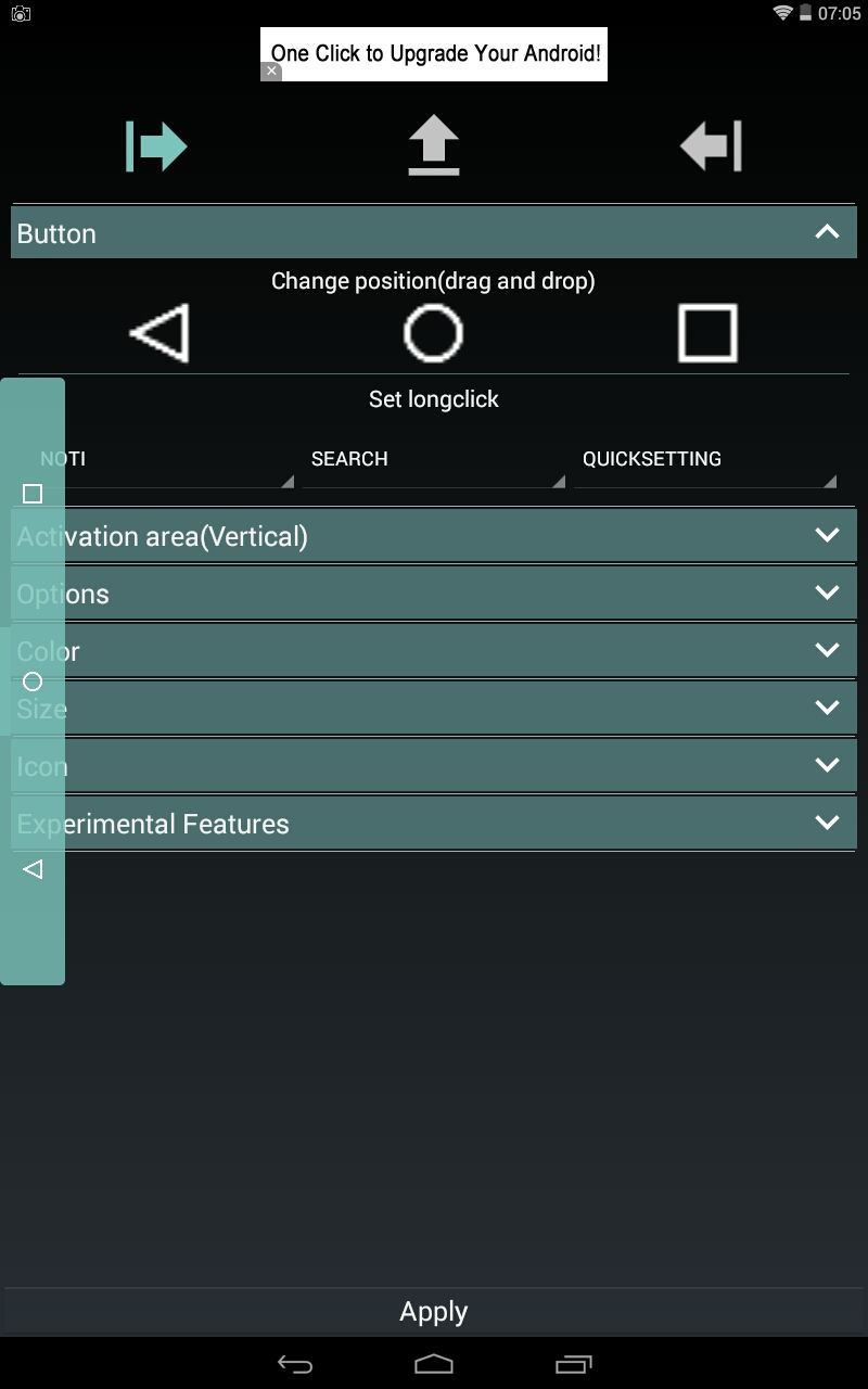 Position of the keys, their size and color can also be tweaked. They can be either vertical or horizontal. Only requirements for the keys to work is that you allow the app to run by opening up Settings >> Accessibility. They are activated by swiping from the edge of the screen, depending on where the keys were placed (horizontal or vertical).