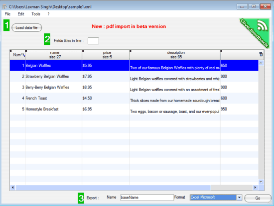 File2data is another XML to Excel converter software for Windows 10. It automatically structures the input file into columns and rows to generate the output Excel. The preview of the output file is also visible clearly. If you are ok with the preview, you can give a custom name and select Excel Microsoft as output, and start the conversion process.