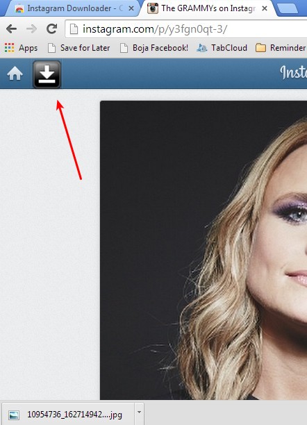 Instagram Downloader will add a download icon all the way in the top left corner of the menu bar when you open up an image on Instagram.