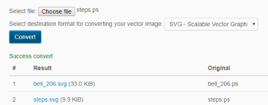 In order to convert the PS file into SVG file format, you can browse the PS file in the converter. Then, select the output as SVG and hit the convert button. And after the conversion, you can download the converted SVG file.