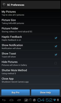 Secret Camera or SC for short might be one of the most advanced secret camera apps that we tested. When you run the app, only its process is created and the only thing that you’re gonna see from it is the notification tray icon.