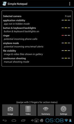 Mobile Hidden Camera is so secretive that when you install it, its icon is called Simple Notepad, and it has an icon that a notepad app would normally have.