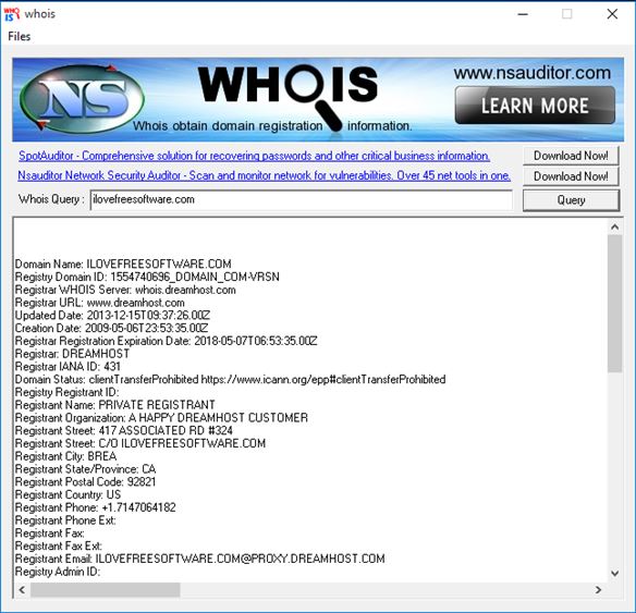 Here’s a list of 5 whois checker software for Windows 10 which can be used to check ownership information of websites on your Windows 10 powered devices. Whois is a protocol used to show website ownership info. It can be very useful if you want to find out who is behind a web shop, for example, or when you are receiving unwanted email from a certain domain. It’s important to note that whois information can be hidden, but even when it’s hidden it will still show domain registrar info, info of the company that was used for registration, and you can contact them about potential problems with the real owner. Let’s have a look at what kind of software are available.