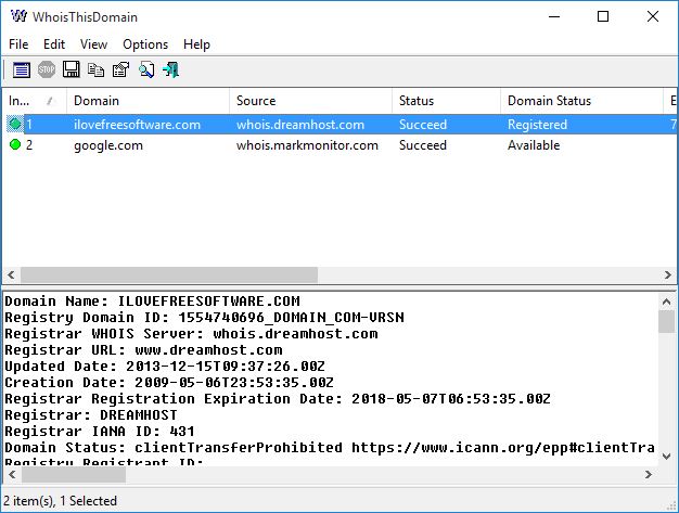 WhoisThisDomain is a whois checker software for Windows 10 created by Nirsoft. WhoisThisDomain lets you check whois information of multiple domains at once. After launching the application you’ll be presented with a window where multiple domain names, separated with commas, can be loaded into the checker and their whois information retrieved in bulk.