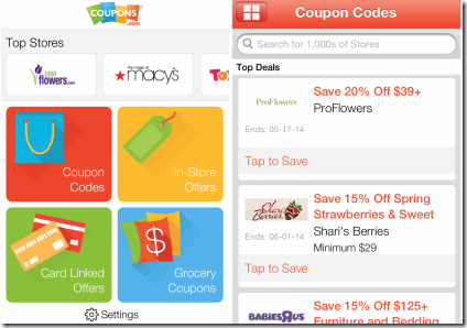 Coupons.com Coupons Codes and Savings is the next discount app for iPhone. The app has all the coupons divided across following categories: Top Stores, Coupon Codes, In-Store Offers, Card Linked Offers, and Grocery Coupons. The In-Store Offers option displays those deals which can’t be availed online but can be enjoyed from the store. The app lets you add these offers to iPhone’s Passbook app. While the Card Linked Offers are those offers which can be linked to your Credit or Debit card.