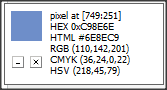 Pixie gives many different values of color on screen, like: HTML, RGB, CMYK, etc. These come in handy for both print and electronic graphics. But some programmers need color values, such as Delphi Code, C++ code, Visual Basic Code, etc., which are missing in this freeware (Color Seizer offers these options). Otherwise, Pixie scores very high for its simplicity in representing values.