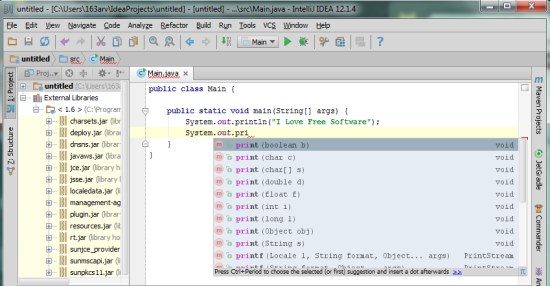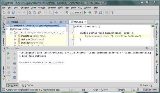 Once you are done, you will be taken to the IntelliJ IDEA Community Edition’s main window where you will get the powerful editor and other tools to easily code and test your programs. The editor supports features like code completion, code assistance, and spell checking, and intelligently understands you code to provide you the right set of tools for application development.