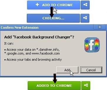 Facebook Background Changer is basically a Chrome extension and can be added directly to your Google Chrome from Chrome Web Store. Go to the website and click on the “Add to Chrome” button available at the top right corner of the window. As you click on the button Chrome will ask you to confirm adding the new extension to your Google Chrome. Click on “Add” button to add Facebook Background Changer.