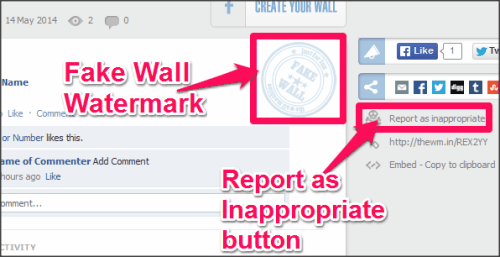 It offers a watermark on the right top corner of the post, which clearly shows “Fake Wall” and it makes it clear that, its not real. It also offers “Report as inappropriate” option with each post. So if you don’t like something, you can report it.