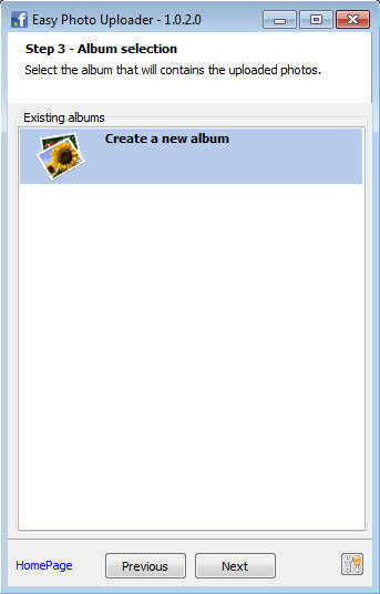 In the third step you can select existing albums or if you don’t have any or would like to add some new ones you can do that to. To create an album select the Create new album button. When you’re creating the album you can select the privacy settings, whether you want it to be public or private, which is very useful and pretty much the Facebook standard. With the album created you’re ready for your images to be uploaded to Facebook, click next and you should see something like this: