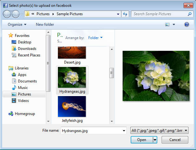 When you first start Easy Facebook Photo Uploader, you’ll be asked to select the image that you want to upload. What you see on the image above is the image selection window where you need to select the images that you want to upload. List of supported formats for image upload is big, 10 different image formats can be uploaded to Facebook with the help of Easy Facebook Photo Uploader: