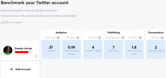 In the above screenshot, you can see how this simple Twitter analytics tool works. After you have added all your competitor’s accounts, you can see your position where you stand in the competition. Based on your stats, you can cook some new strategies to improve your position and check the queue again sometime later.