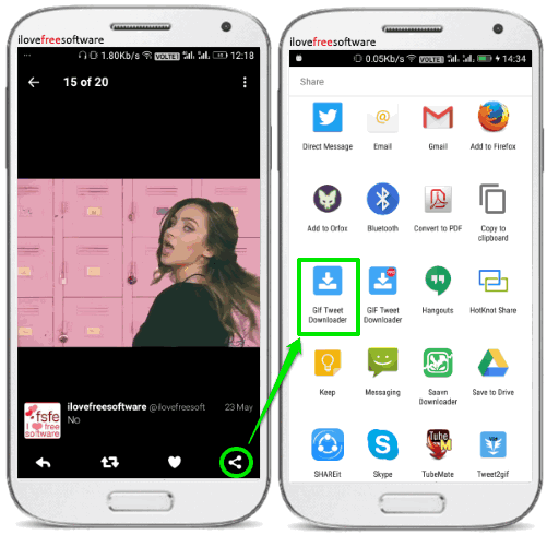 Method 2: This method is easier as compared to the first one. But, it can only be used when you have the Twitter app installed on your phone. From the Twitter app, you can share a GIF with this Android app and then use this app to download twitter gif on Android. In order to share a GIF from Twitter app, tap on the “Share” button and then share it to “Tweet2gif”, as shown in the screenshot below.