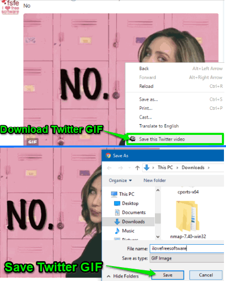 You can install it from the link provided above and then open Twitter website. Now, when you come across any GIF on Twitter and want to download it, right-click on the GIF and click on the “Save this Twitter video” option. It will then start the processing and will open a new tab with the GIF you want to save. However, you don’t need to manually save the GIF as it automatically opens up a dialog box to save the GIF file, as shown in the screenshot above. Once the Twitter GIF is saved, the newly opened Chrome tab with Twitter GIF is also automatically closed.