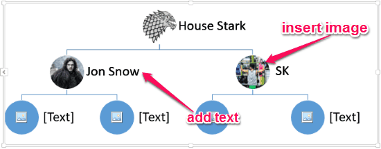 Step 3: Suppose, you have also selected the “Circle Picture Hierarchy” graphic to create a family tree in MS Word. After you’re done selecting the SmartArt graphic, it will open up in the blank page of the new document. Now, you can click on the text box associated with each node to enter the name of the family member. In addition to that, you can also add an image to all the nodes in the family tree. For this, simply click on the “Circular” icon and then choose an image from your PC or search Bing for an image.
