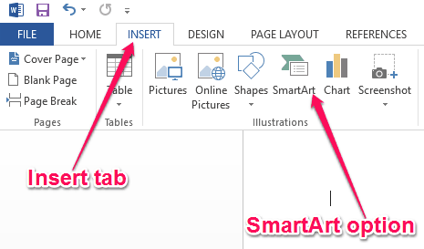 Step 1: To get started, simply open up MS Word and then select “File → New” to create a new document. After that, click on the “Insert” tab and there you will see an option named “SmartArt” under the “Illustrations” section.