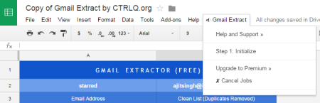 Step 3: Click on Gmail Extract option from the toolbar and click on Step 1: Initialize. You will be asked to authorize the script to run, authorize it.