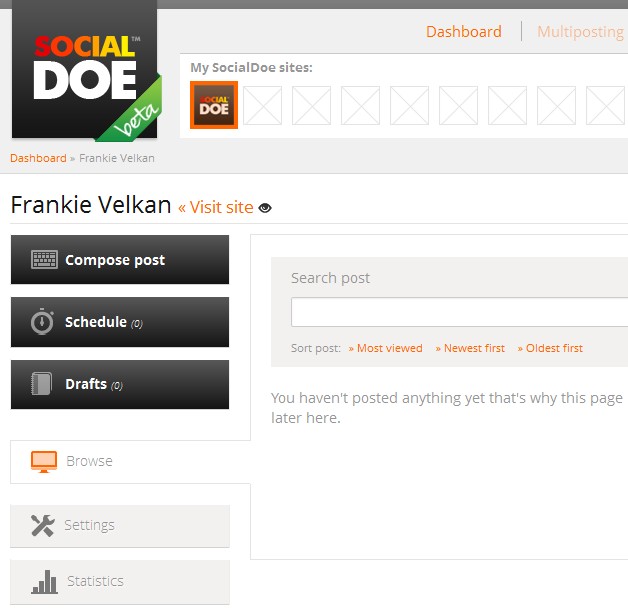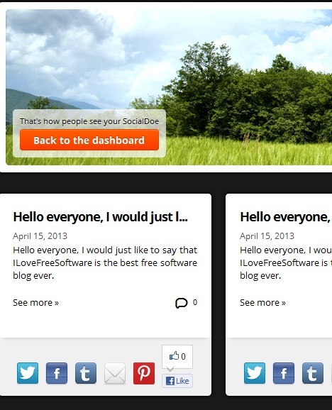 SocialDoe is a free social website creator, very similar to for example to Blogspot or WordPress, but the difference here is that SocialDoe integrates social networks like Facebook and Twitter when creating websites. Posts created with this free social web page creator will simultaneously be posted to social networks that you connect, as well as the SocialDoe web page that’s created.