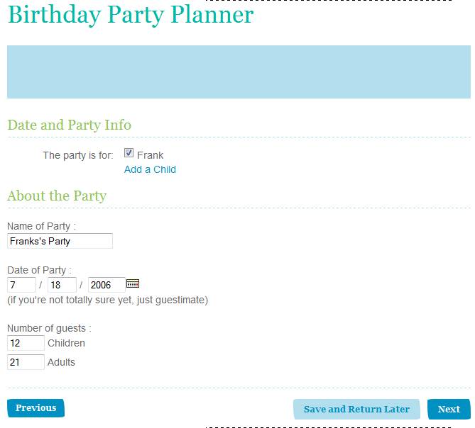 Like we already said, using this free online birthday party planning service means that you have to go through a very simple wizard. Here, are a few simple tips which should help you get a control over this Birthday party planning service.