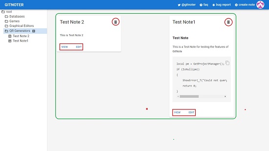 11. To View, Edit, Delete any Note, click on the relevant icons or links. You can also Edit / Delete any note by hovering the mouse cursor over its name and clicking on the required link.