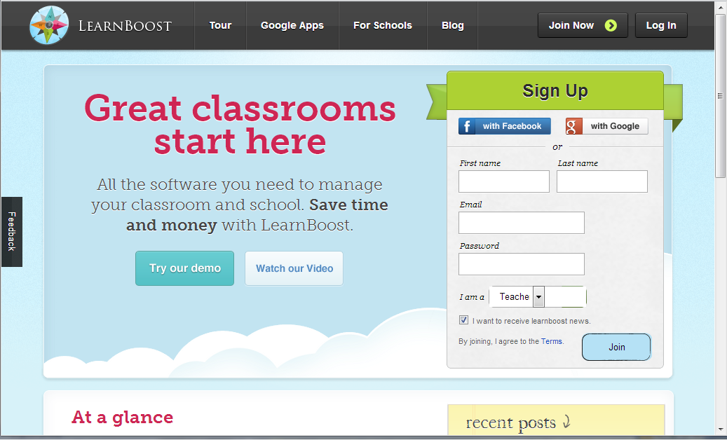 LearnBoost is a free online gradebook application that can help you to manage your classroom and school easily. In other words, it is an online equivalent of the planner that used to be at every desk along with the calendar. It is efficient and useful for parents, teachers, and students alike. Although there are other such tools available online, LearnBoost with its beautiful interface, still, holds significance. More importantly, this free online gradebook software can be integrated with some Google applications too.