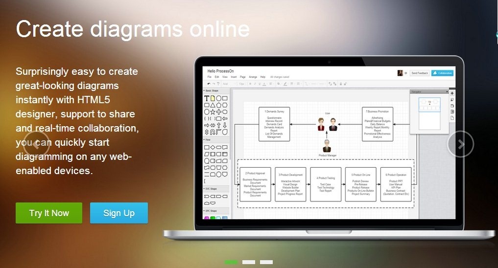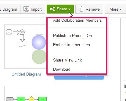 Process On is a free online diagramming tool that allows users to create different kinds of diagrams and share them online with others. The software also allows real time collaboration with other participants by sending them an invitation. You can invite other users on Process On and collaborate with them to create a diagram. Basically, this online diagramming tool is a platform where users can create diagrams, share them with others and also collaborate with them.