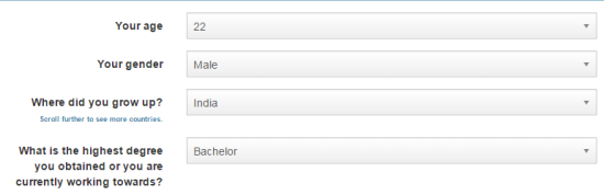 The vocabulary test made by the Ghent University is a short one which hardly takes 4 minutes, but you have to provide a few details about yourself before you can start with it. You have to enter the details like your age, gender, the country where you grew up, native language, knowledge level of English, etc.