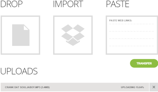 This website supports three types of uploading process. Using drag n drop to upload files from PC, using Import option to upload files from your Dropbox account, and using Paste option to insert online files URL. However, only first option works fine for me. When I tried to upload files using rest of the two options, files upload progress remain in pending.