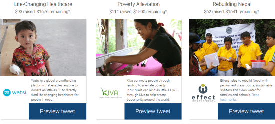 This website is doing a good job and you can also help charities to raise some funds for good purposes. All you have to do is select the cause and tweet it.