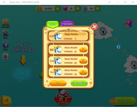 Bingo Rush is a Windows 10 Bingo game app where you get to play Bingo and your aim is to complete the pattern. The app has beautiful graphics and background sound. When you complete a Bingo pattern you get coins and coins can later be used to buy extra Bingo balls. You can also travel through different landscapes while playing the game.