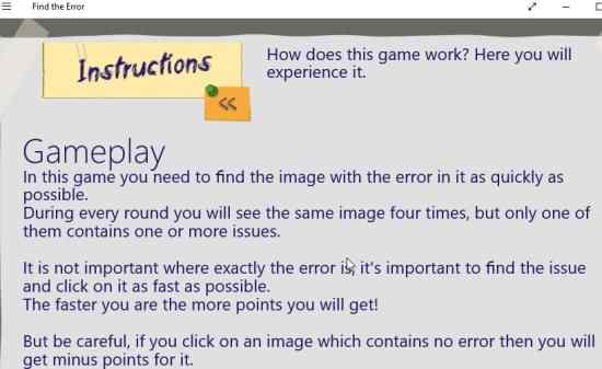 Find the error is a nice app for Windows 10, for people who love playing find the difference games. Having four images instead of two does make it more challenging. Plus the images used in this game app have very minute differences and you have to really focus and look hard to find the differences.