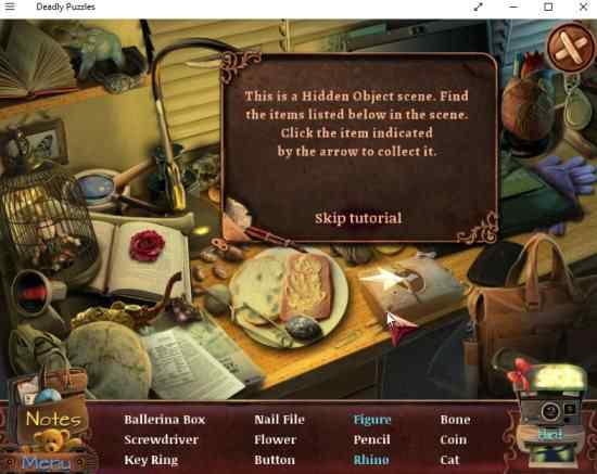 Deadly Puzzles Toymaker is a free Windows 10 hidden objects puzzle game app where you play a detective in search of a serial killer and you have to find hidden clues to catch the killer. The only disappointing fact of the game is that it gives you only a few free levels, after that you would be asked to upgrade to a paid version. Just when you start getting into the game, you realize its end of the road for free game.