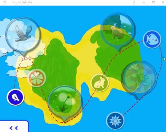 Press the play button you see on the home screen to start this game. After this you will come across a map with levels marked with icons like birds, animal, plants, etc. You start with the level with the birds icon, as seen in the screenshot below.